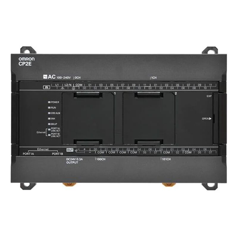 The CP2E‑N40DT1‑D is a high‑performance compact PLC from Omron’s CP2E series, designed for reliable machine control and industrial automation. It features 24 digital inputs, 16 PNP transistor outputs, dual Ethernet ports for stable networking and M2M communication, and fast logic processing at 0.23 µs. With built‑in positioning, high‑speed counting, and battery‑free memory backup, it delivers stable performance, easy programming, and flexible expansion for small‑to‑medium automation systems.
