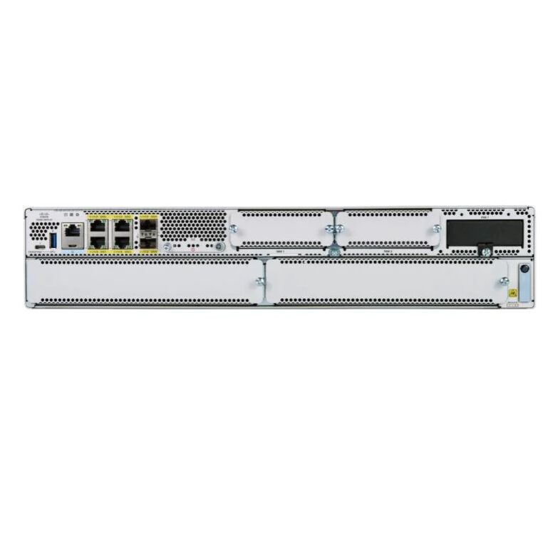 C8300 2RU w/ 1G WAN (2 SM and 2 NIM slots, and 6 x 1-Gigabit Ethernet ports) |